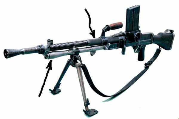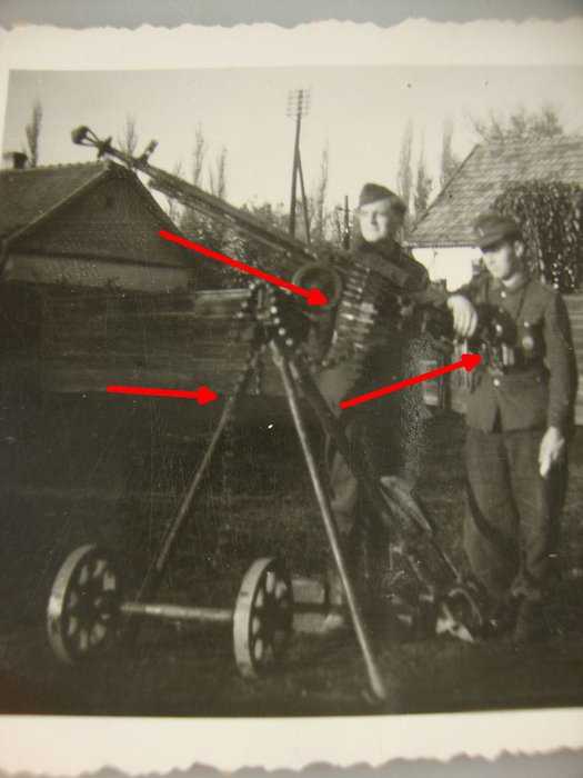 Немецкий солдат у установленного на зенитный штатив трофейного югославского пулемета «Zbrojovka M 37». Немного отвлекусь от темы.Часто югославский «Zbrojovka M 37» путают с чешским ZB.26/ZB.30.Ниже пара фото на которых выделено основное различие между ними — разное оребрение ствола и газоотводной трубки.