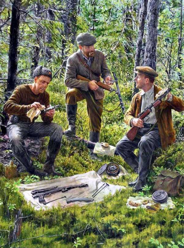 ППШ-42 — Белорусские партизаны в лесу, весна 1944 года