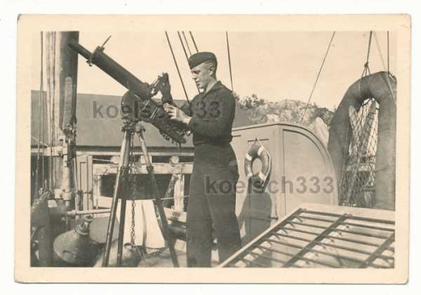 Сигнальщик Кригсмарине у трофейного британского пулемета БРЕН ,используемого для зенитного прикрытия катера.