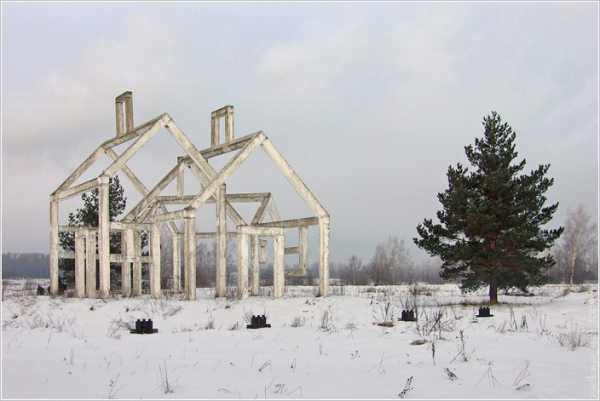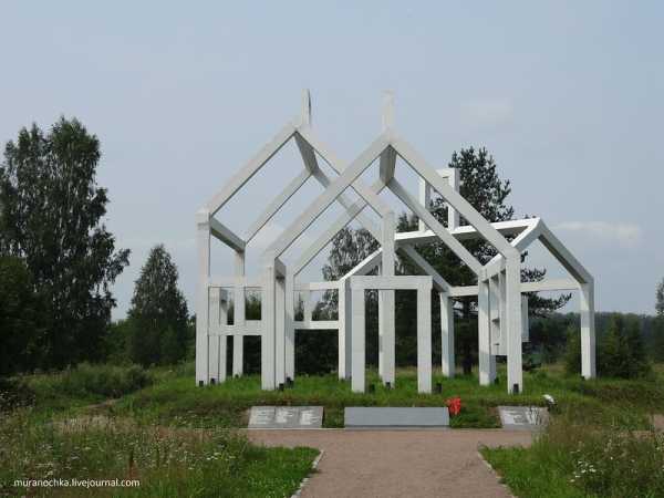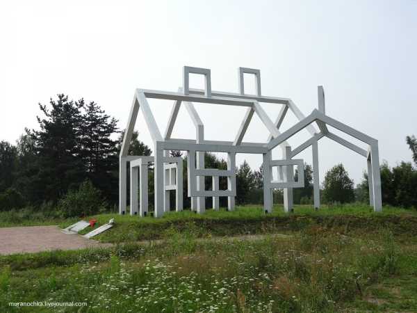 Вот я и подошла к Призрачной деревне. Памятник, по задумке архитекторов, представляет собой остов нескольких изб, выкрашенный в белый цвет, словно силуэт духа, оставшегося в мире живых: