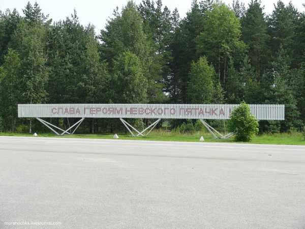 Вот с этого места я и сфотографировала щит с надписью «Слава героям Невского пятачка!», установленного вдоль шоссе: