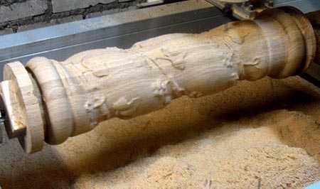 - станок обрабатывает дерево, делая на нем декор точно по рисунку.