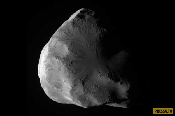 15. Феба — один из нерегулярных удаленных спутников Сатурна, открытый У. Пикерингом в 1899 году по снимкам, полученным в Арекипской обсерватории (Перу). Названа в честь титаниды Фебы из древнегреческой мифологии. Феба является очень тёмным телом, но внутренность некоторых кратеров состоит из более светлого материала, предположительно льда. (Фото Nasa | JPL-Caltech | Space Science Institute):