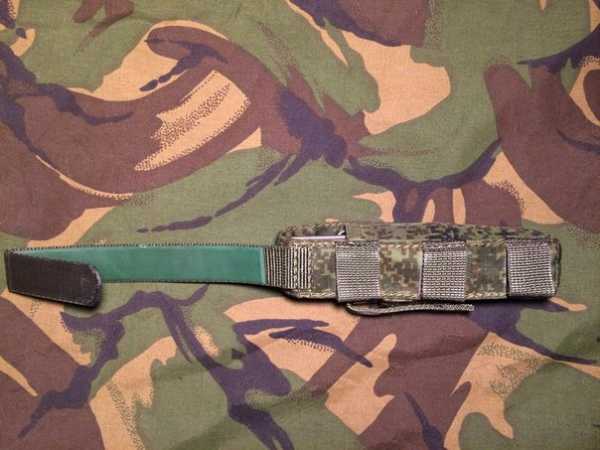 Про подсумок, идущий в комплекте, особо лестных слов тоже не скажу. Чьего производства он я не скажу (но не Техинком — точно), но пошит подсумок на твёрдую тройку. Застёгивается на клапан с кнопкой и липучкой (но хотя бы есть сегмент-«язычок» из стропы для удобного открывания), есть боковой кармашек для напильника (запирается на одно лишь «велкро»), есть люверс для слива и крепления типа УМБТС (которое с большой долей вероятности станет и на Molle, но я не проверял). Есть косяки в пошиве, но в целом, сойдёт.