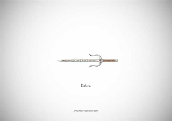 Неудивительно, что разного рода клинки остаются спутниками множества реальных и выдуманных героев, о «подвигах» которых мы узнаем из книг, кино и других медиа-источников. Итальянский мультимедиа-дизайнер Федерико Мауро (Federico Mauro) создал несколько графических серий, показывающих предметы обихода культовых персонажей (вот, например: оружие, обувь), в том числе и всевозможные ножи и клинки множества знаменитых медиа-героев: