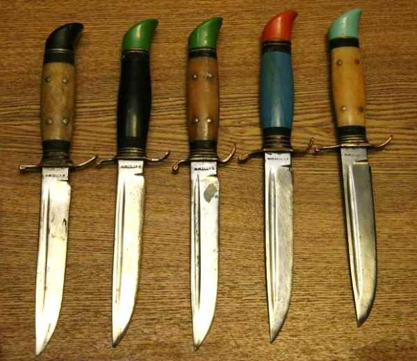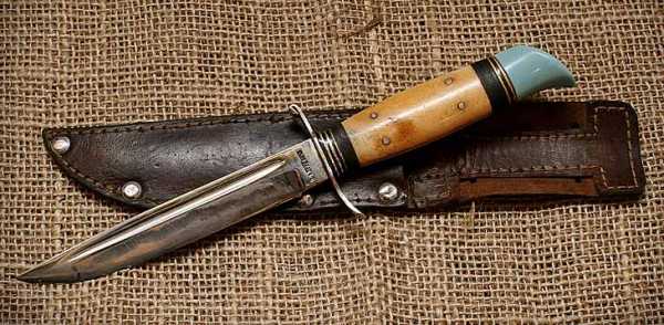 Рукоять выполняли из карболита, который являлся советским аналогом бакелита. Примечательно, что исполняли рукоять самыми разными способами. Отличия между ножами были в цвете, применяемом материале. Но ножны всегда были темных цветов – коричневые либо черные. В них имелись петли, чтобы крепить к ремню. Была на них и кнопочная застежка.