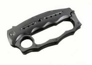 Однако такое конструктивное выполнение затрудняет складывание клинка. Для этого пальцы руки нужно просунуть в отверстия «кастета».