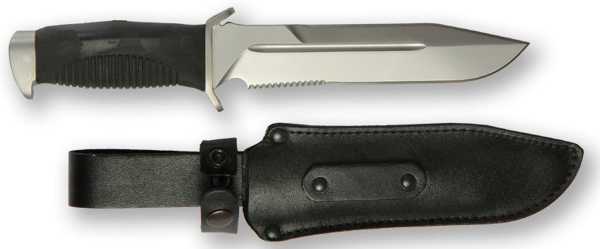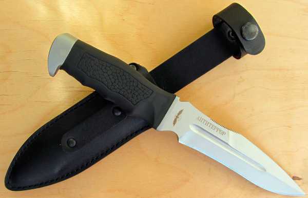 - “Scubadive knife” представляет собой тактический нож спецназа, разработанный для проведения подводных работ аквалангистами. Его лезвие оснащено серрейтерными заточками, размещенными по обеим сторонам для разрезания канатов и веревок. У основания резиновой рукояти находится молоток, который используется для подачи сигналов под водой.