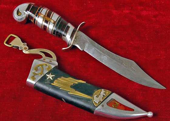 Подарочные ножи отличались крайним разнообразием: от недурной авторской отделки серийных армейских моделей до оригинальных кустарных изделий, имеющих в основе дизайн штатных армейских или национальных клинков — от финских и среднеазиатских ножей до кавказских кинжалов.