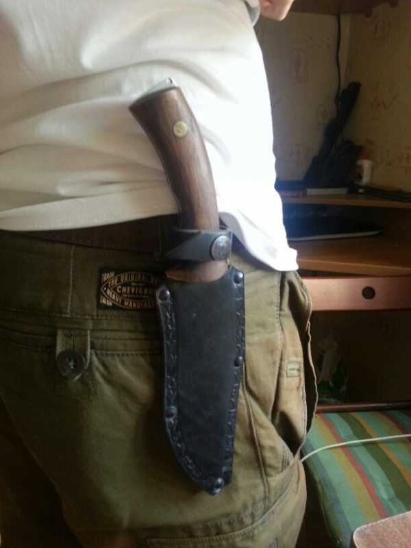 ΠΠΎΡ ΡΠ°ΠΊ Π²ΡΠ³Π»ΡΠ΄ΡΡ ΡΠ°ΠΌΡΠ΅ ΠΎΠ±ΡΠΊΠ½ΠΎΠ²Π΅Π½Π½ΡΠ΅ ΠΊΠΎΠΆΠ°Π½Π½ΡΠ΅ Π½ΠΎΠΆΠ½Ρ β ΠΏΡΠΎΡΡΠΎ ΡΡΠΈΡΡΠΉ ΠΊΡΡΠΎΠΊ ΠΊΠΎΠΆΠΈ Ρ ΠΏΡΠΈΡΠΈΡΡΠΌ ΠΊΡΠ΅ΠΏΠ»Π΅Π½ΠΈΠ΅ΠΌ (ΡΠΎΠΆΠ΅ ΠΈΠ· ΠΊΠΎΠΆΠΈ) ΠΏΠΎΠ΄ ΡΠ΅ΠΌΠ΅Π½Ρ. ΠΠΎΠΆ Π²ΡΠ΅Π³Π΄Π° ΡΡΠ°ΠΏΠ»ΠΈΠ²Π°Π΅ΡΡΡ Π² Π½ΠΈΡ ΠΏΠΎΡΡΠΈ ΠΏΠΎΠ»Π½ΠΎΡΡΡΡ, Π±ΡΠ²Π°Π΅Ρ ΡΠΎΡΡΠΈΡ ΡΠΎΠ»ΡΠΊΠΎ ΠΌΠ°Π»Π΅Π½ΡΠΊΠΈΠΉ ΠΊΡΡΠΎΠΊ ΡΡΠΊΠΎΡΡΠΈ ΠΈΠ»ΠΈ ΠΏΠΎΠ»ΠΎΠ²ΠΈΠ½Π°, ΠΊΠ°ΠΊ Π½Π° ΡΠΎΡΠΎ. ΠΠΎΠΆ Π°Π±ΡΠΎΠ»ΡΡΠ½ΠΎ Π½ΠΈΡΠ΅ΠΌ Π½Π΅ ΡΠΈΠΊΡΠΈΡΡΠ΅ΡΡΡ, ΡΠΎΠ»ΡΠΊΠΎ ΡΠΈΠ»Π° ΡΡΠ΅Π½ΠΈΡ. Π’Π°ΠΊΠΈΠ΅ Π½ΠΎΠΆΠ½Ρ ΠΎΠ±ΡΡΠ½ΠΎ Π΄Π΅Π»Π°ΡΡ Π΄Π»Ρ ΠΎΡ ΠΎΡΠ½ΠΈΡΡΠΈΡ Π½ΠΎΠΆΠ΅ΠΉ (Π±Π΅Π· Π³Π°ΡΠ΄Ρ), Π³Π΄Π΅ ΡΠΊΠΎΡΠΎΡΡΡ ΠΈΠ·Π²Π»Π΅ΡΠ΅Π½ΠΈΡ Π½ΠΎΠΆΠ° Π½Π΅ Π²Π°ΠΆΠ½Π°.Β Π£ ΠΌΠ΅Π½Ρ ΡΠ°ΠΊΠΎΠΉ ΠΊΠΎΠ³Π΄Π°-ΡΠΎ Π±ΡΠ», Π½ΠΎ ΡΠΎΡΠΎΠ³ΡΠ°ΡΠΈΠΈ Π½Π΅ ΡΠΎΡ ΡΠ°Π½ΠΈΠ»ΠΈΡΡ, ΠΊΠ°ΡΡΠΈΠ½ΠΊΠ° Ρ ΠΈΠ½ΡΠ΅ΡΠ½Π΅ΡΠ°, ΠΌΠΎΠ΄Π΅Π»ΠΈ Π½Π΅ ΡΠΊΠ°ΠΆΡ.