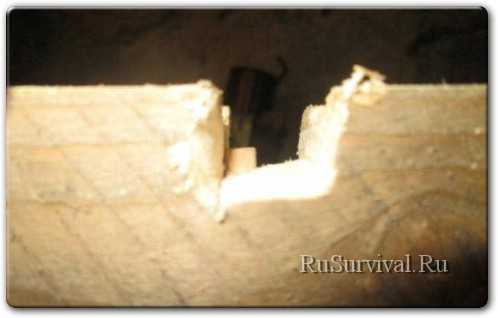 Уголок должен быть установлен на краю длинной планки саморезами, однако он будет мешать вылету стрелы. Чтобы избежать этого, делаем небольшое углубление на планке.