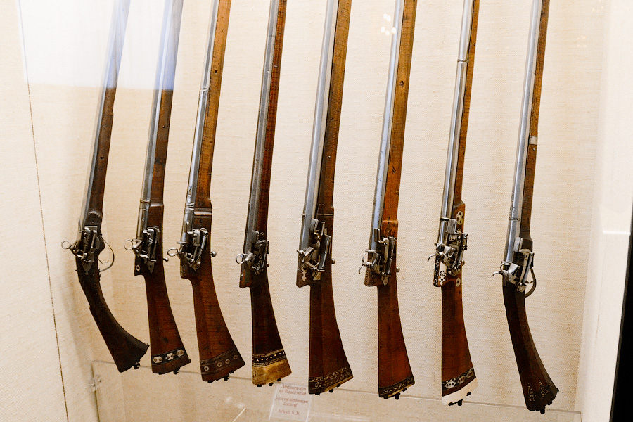 Здесь же выставлены и ружья (фузеи), находившиеся на вооружении петровской армии.