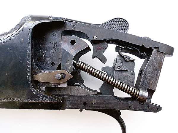 Увеличенная ось повышает живучесть ружья и позволяет добиться больших настрелов без появления шата. Второй крюк входит в специальный вырез в колодке, и таким образом блок стволов фиксируется в колодке; массивная пластина при закрывании ружья входит в специальный вырез на блоке стволов и запирает их.
