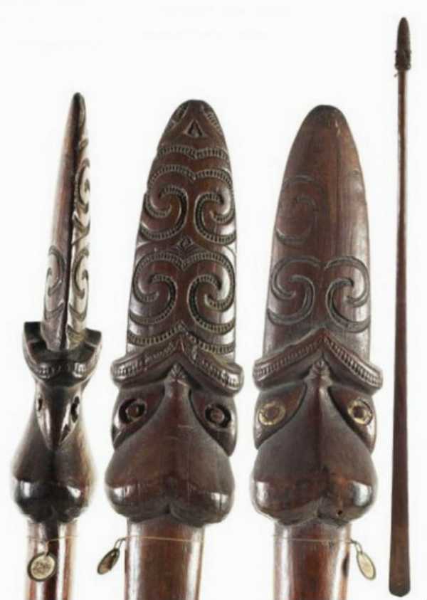 Традиционно оружие маори изготавливалось из дерева, кости, камня или зеленого камня (greenstone). В качестве сувениров можно купить такие традиционные виды оружия как тайаха (Taiaha – если вы смотрели фильм “Оседлавший кита”, который я здесь выкладывала, вы должны представлять, как оно использовалось маори в бою), пату (Patu), мере (Mere), вахайка и кортиахте (Wahaika и Kotiate – булавы маори).