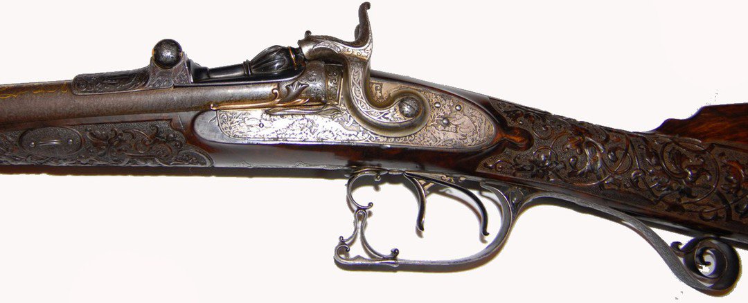 Другое ружье, датируемое 1744 г., свидетельствует об изготовлении охотничьего оружия на Тульском оружейном заводе уже в первой половине XVIII в. Значительный интерес представляют ударно-кремневые штуцер с треугольным в сечении каналом ствола и ружье с каналом ствола овального сечения.
