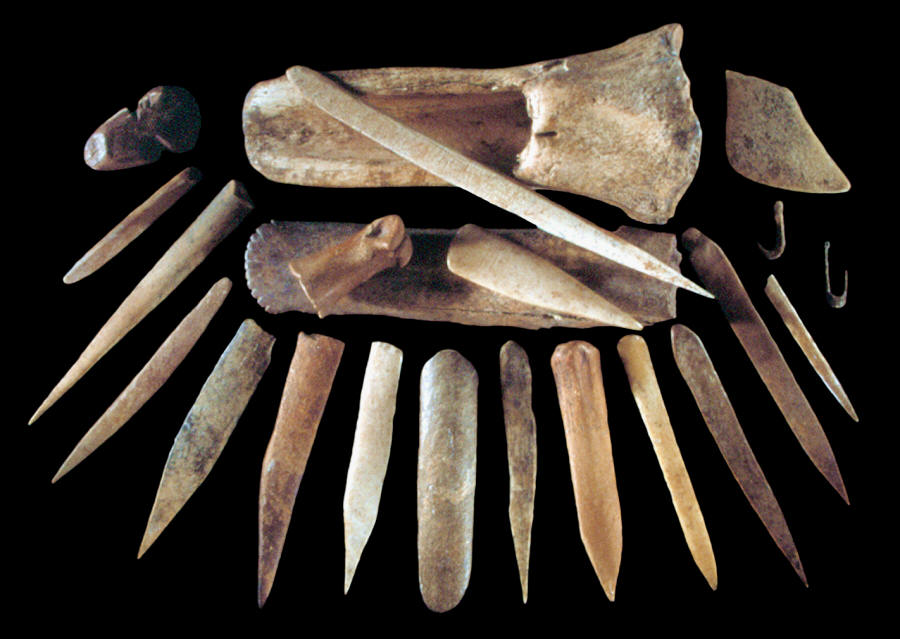 В нашем же случае на найденных костях крыльев крупных птиц обнаружились специфические надрезы, свидетельствующие о том, что с них была аккуратно снята «шкура» с маховыми перьями. Причем не только на лучевой и локтевой, но и на пястных, где собственно мяса и нет. Это же не бройлер, посасывая копченую конечность которого, можно запросто усидеть дюжину баночек пенного напитка :)). То есть троглодитов интересовали именно перья.