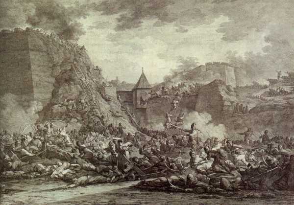 Штурм Очакова. Гравюра А. Берга. 1792 год