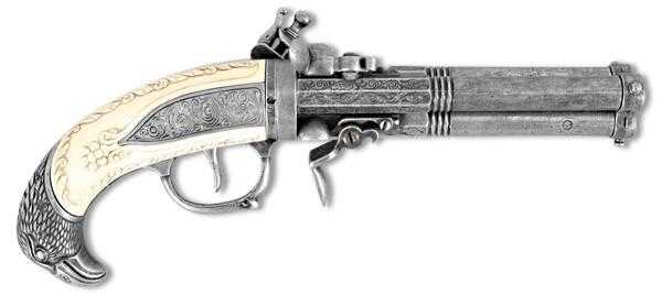 Типичный путешествующий дворянин носил два таких дорожных пистолета, реже четыре. По этой причине у разбойников того времени появилась привычка ходить по трое.