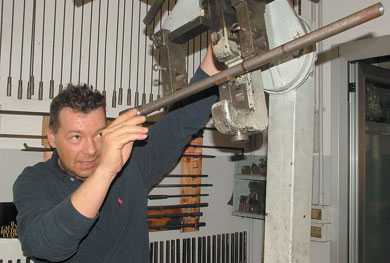 Перед тем как приступить к обработке наружной поверхности ствола, его рихтуют — проверяют прямолинейность оси канала и при необходимости выправляют ее с помощью винтового пресса. Проверку правильности канала осуществляют по теневым кольцам, что каждый охотник может сделать и сам. А вот процесс правки требует не только хорошего зрения, но и большого чувства металла, приходящего только с опытом. Дело в том, что ствол имеет упругость. Поэтому если под нагрузкой он выпрямился, то после ее снятия он частично вернется в исходное состояние. Опытный мастер чувствует, насколько ствол нужно «перегнуть», чтобы после снятия нагрузки он стал безукоризненно правильным.