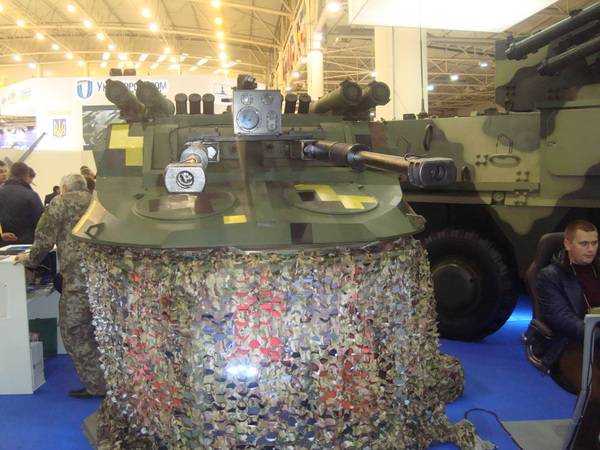 Дошло дело и до бронетранспортеров. «Гвоздем» выставки стал БТР на колесной платформе «Отаман» («Атаман»), который произвел сильное впечатление на самого Турчинова. Однако на поверку оказалось, что привыкшие клепать сейфы конструкторы «Практики» большой новизны не добились: на колесное шасси они установили башню самоходной артиллерийской установки 2С1 «Гвоздика» калибра 122 мм, которая была принята на вооружение в Советском Союзе в 1971 году.