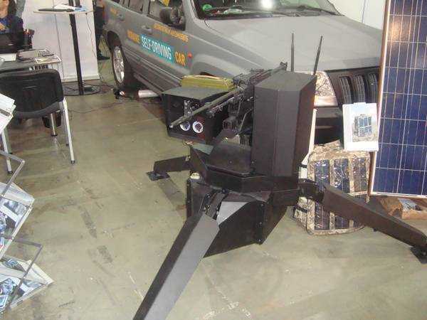 Новинкой в стрелковой экспозиции стала роботизированная платформа «Ласка». На ней крепится пулемет. Несколько таких установок могут соединяться в сеть (от 2 до 4 шт и управляться оператором на расстоянии до до 300 м).