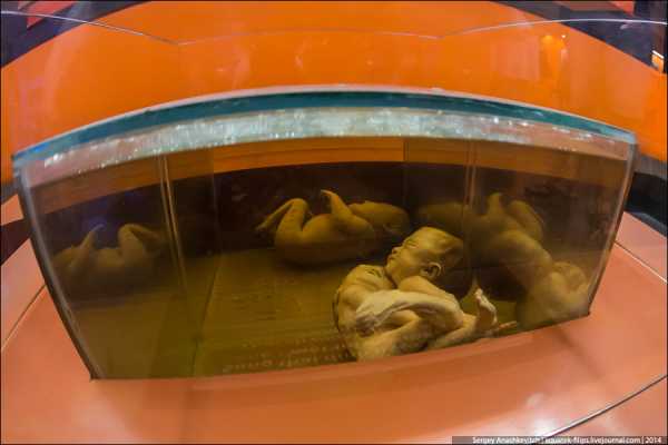 15. В центре зала находится, пожалуй, самый страшных экспонат — емкость с формалином, в которой покоятся сросшиеся близнецы — результат воздействия диоксина на организм матери, к счастью для близнецов, умершей еще до родов…