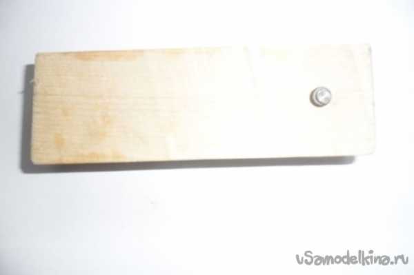 Колесико гвоздиком прибил к деревянному бруску.