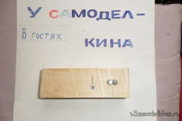 Для этого на боку колесика сделаны насечки. Если левое колесико прибито к бруску вверх насечками, то правое прибивают насечками вниз. Прибил гвоздем второе колесико и приступил к испытанию конструкции, изготовленной за полчаса.