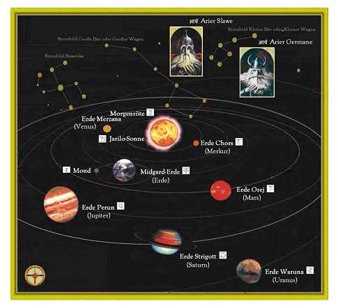 Первыми на Мидгард-Землю прибыли Да`Арийцы. Они пришли из Звёздной системы созвездия Зимун или Малой Медведицы, земли Раи. Цвет их глаз — серый, серебряный — соответствовал солнцу их системы, которое имело название Тара (Рис.1). Они и назвали северный материк, где поселились, Даарией.