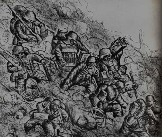 Вскоре ему станет не до рисования. Несколько лет он проведет в траншеях. Грязь, обстрелы, газовые атаки, бойня на Сомме в 1916 г., бойня во Фландрии в 1918 — все по полной программе. Он будет несколько раз ранен, заработает Железный крест 2-го класса и… стойкую неприязнь к войне.