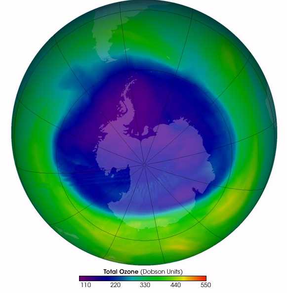 Снижение концентрации озона над Антарктидой назвали «озоновой дырой». В настоящее время размеры «дыры» почти равны площади этого материка.