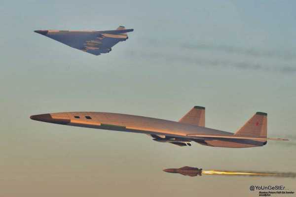 В Америке тоже существует подобная программа разработки стратегического бомбардировщика – Long Range Strike Bomber LRS-B. И американская и наша программы идут примерно в одном направлении. И там и у нас отказались от гиперзвуковой режима, и от сверхзвукового крейсерского режима, в силу дороговизны разработок. Возможные лучшие качества малозаметности американского аналога, решено компенсировать большим радиусом действия крылатых ракет и их гиперзвуковой скоростью. Такие ракеты позволять с более дальнего расстояния производить пуск, что позволит минимизировать взаимодействие с ПВО противника.