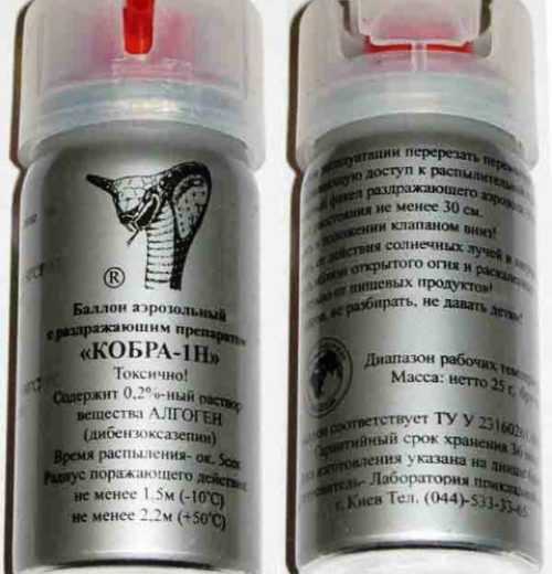 CS – традиционный лакриматор, раздражающий дыхательные пути и вызывающий слезотечение. Время действия вещества – не более 30 мин;- ОС – экстракт красного перца. Сильно раздражает носоглотку и кожу, вызывает спазмы в горле и кашель. Время действия – 40 мин. На основе ОС изготавливается газовый баллончик Контроль Ум, отзывы о котором подтверждают его эффективность при защите от животных и лиц в алкогольном или наркотическом опьянении;