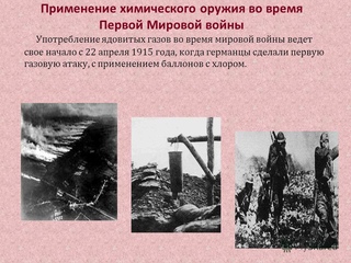 Первое существенное применение химического оружия в течение продолжительного периода времени в невообразимых масштабах было замечено во время Первой мировой войны.