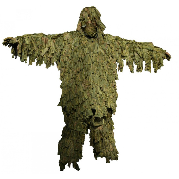 Как правило, костюм позволяет пользователю эффективно слиться с окружающим пейзажем. Однако для усиления конспирации следует купить маскхалат, оснащенный дополнительной защитой в области лица и кистей (варежки).