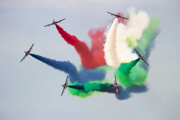 На авиасалоне МАКС-2017 арабская пилотажная группа Al Fursan впервые показала свое мастерство в России и произвела фурор: семь самолетов Aermacchi MB-339 – по количеству объединенных арабских Эмиратов – оснащены столь мощными дымогенераторами, что на снимках их выступления часто кажутся «отфотошопленными». Однако российские любители авиации смогли полюбоваться этим шоу воочию – сочные красные, зеленые, белые и черные дымы (цвета национального флага) сопровождали в небе эффектные роспуски, «вентилятор» и фирменную фигуру, в которой угадываются изгибы меча Зульфикар. В переводе с арабского «Аль-Фурсан» означает «рыцари». Пилотажная группа была сформирована в 2010 году под покровительством шейха Мохаммеда бен Зайда Аль Нахайана. Самолеты раскрашены в черно-золотые цвета, символизирующие нефть и песок. Пилоты отбираются из лучших летчиков ВВС ОАЭ.