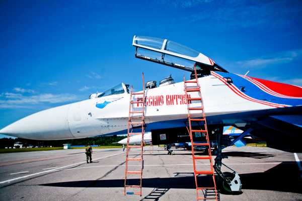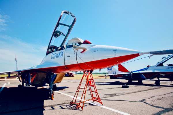 В прошедшую субботу, 4-го июля, в единственный по-настоящему тёплый и жаркий день за это лето, я оказалась на военном аэродроме в Пушкине, чтобы увидеть там прилёт пилотажной группы «Русь». Базируется «Русь» в Вязьме (это под Смоленском), а на 5-ое число было назначено выступление на закрытии Международного военно-морского салона в Ленэкспо.На аэродром мы прибыли заранее, но лётчикам никак не давали разрешение на вылет с домашнего аэродрома, потому мы их самоотверженно ждали — день показался особенно жарким, ещё и потому что солнце палило так, что обгоревшие части тела до сих пор болят=) Но это стоило того, ожидание было интересным — тут же на аэродроме стояли «Стрижи» и «Русские витязи», поэтому удалось поснимать и их самолёты и даже посидеть в кабине МиГ-29 «Стрижей», внимательно изучив все элементы управления.