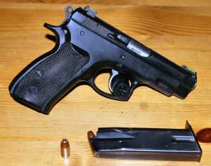 9-мм автоматический пистолет CZ-75A, запасной магазин используется в качестве рукоятки удержания