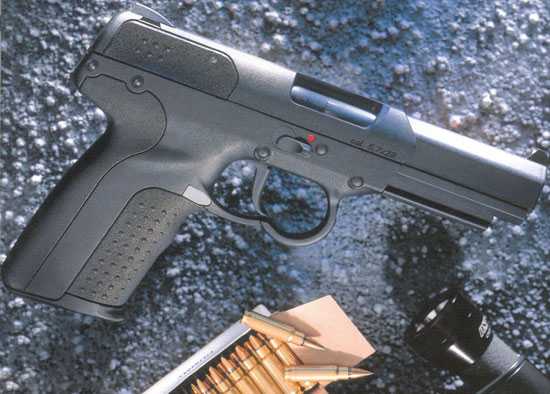 ΠΡΠΈΡΠ΅Π»ΡΠ½ΡΠ΅ ΠΏΡΠΈΡΠΏΠΎΡΠΎΠ±Π»Π΅Π½ΠΈΡ ΡΠΎΡΡΠΎΡΡ ΠΈΠ· Π²ΡΡΠΎΠΊΠΎΠΉ Π½Π΅ ΡΠ΅Π³ΡΠ»ΠΈΡΡΠ΅ΠΌΠΎΠΉ ΠΌΡΡΠΊΠΈ ΠΈ ΡΠ΅Π³ΡΠ»ΠΈΡΡΠ΅ΠΌΠΎΠ³ΠΎ Π² Π΄Π²ΡΡ ΠΏΠ»ΠΎΡΠΊΠΎΡΡΡΡ ΡΠ΅Π»ΠΈΠΊΠ°. ΠΡΡΠΊΠ° ΠΈΠΌΠ΅Π΅Ρ ΠΊΡΡΠ³Π»ΡΡ Π±Π΅Π»ΡΡ Π²ΡΡΠ°Π²ΠΊΡ, ΡΠ΅Π»ΠΈΠΊ β ΠΏΡΡΠΌΠΎΡΠ³ΠΎΠ»ΡΠ½ΡΠ΅ ΠΌΠ΅ΡΠΊΠΈ, Π»ΠΈΠ±ΠΎ Π΄Π²Π΅ ΠΊΡΡΠ³Π»ΡΠ΅ ΡΠΎΡΠΊΠΈ, ΡΡΠΎ Π½Π΅ΠΎΠ±Ρ ΠΎΠ΄ΠΈΠΌΠΎ Π΄Π»Ρ ΠΏΡΠΈΡΠ΅Π»ΠΈΠ²Π°Π½ΠΈΡ Π² ΡΡΠ»ΠΎΠ²ΠΈΡΡ Π½Π΅Π΄ΠΎΡΡΠ°ΡΠΎΡΠ½ΠΎΠΉ ΠΎΡΠ²Π΅ΡΠ΅Π½Π½ΠΎΡΡΠΈ. ΠΠ»Ρ Π½Π΅ΠΏΠΎΠ»Π½ΠΎΠΉ ΡΠ°Π·Π±ΠΎΡΠΊΠΈ Π½ΡΠΆΠ½ΠΎ ΠΎΡΡΠΎΠ΅Π΄ΠΈΠ½ΠΈΡΡ ΠΌΠ°Π³Π°Π·ΠΈΠ½, ΡΠ±Π΅Π΄ΠΈΡΡΡΡ Π² ΠΎΡΡΡΡΡΡΠ²ΠΈΠΈ ΠΏΠ°ΡΡΠΎΠ½Π° Π² ΠΏΠ°ΡΡΠΎΠ½Π½ΠΈΠΊΠ΅, ΠΎΡΡΡΠ½ΡΠ² Π·Π°ΡΠ²ΠΎΡ-ΠΊΠΎΠΆΡΡ ΠΎΡΠΆΠ°ΡΡ Π½Π°Π·Π°Π΄ ΡΠΈΠΊΡΠ°ΡΠΎΡ ΡΡΠ²ΠΎΠ»Π° ΠΈ ΡΠ½ΡΡΡ Π·Π°ΡΠ²ΠΎΡ-ΠΊΠΎΠΆΡΡ Π΄Π²ΠΈΠΆΠ΅Π½ΠΈΠ΅ΠΌ Π½Π°Π·Π°Π΄, Π²Π²Π΅ΡΡ , Π²ΠΏΠ΅ΡΠ΅Π΄. ΠΠΎΠΌΠΏΠ°Π½ΠΈΡ FNH USA Π½Π΅ ΡΠ΅ΠΊΠΎΠΌΠ΅Π½Π΄ΡΠ΅Ρ ΠΏΡΠΎΠΈΠ·Π²ΠΎΠ΄ΠΈΡΡ ΠΏΠΎΠ»Π½ΡΡ ΡΠ°Π·Π±ΠΎΡΠΊΡ ΡΠ°ΠΌΠΎΡΡΠΎΡΡΠ΅Π»ΡΠ½ΠΎ ΠΈ Π΄ΠΎΠ²Π΅ΡΡΡΡ ΡΡΠΎ ΡΠΎΠ»ΡΠΊΠΎ ΠΊΠ²Π°Π»ΠΈΡΠΈΡΠΈΡΠΎΠ²Π°Π½Π½ΠΎΠΌΡ ΠΎΡΡΠΆΠ΅ΠΉΠ½ΠΈΠΊΡ. ΠΡΠ΄Π°ΡΠ°, ΡΠΈΠ»Π° ΠΊΠΎΡΠΎΡΠΎΠΉ ΡΠΎΡΡΠ°Π²Π»ΡΠ΅Ρ ΠΏΡΠΈΠΌΠ΅ΡΠ½ΠΎ 2/3 ΠΎΡ ΡΠ°ΠΊΠΎΠ²ΠΎΠΉ Ρ Π°Π½Π°Π»ΠΎΠ³ΠΈΡΠ½ΡΡ ΠΏΠΎ ΠΌΠ°ΡΡΠ΅ ΠΈ Π³Π°Π±Π°ΡΠΈΡΠ°ΠΌ ΠΏΠΈΡΡΠΎΠ»Π΅ΡΠΎΠ² ΠΏΠΎΠ΄ ΠΏΠ°ΡΡΠΎΠ½ 9mm Parabellum, Π΅Π΄Π²Π° Π·Π°ΠΌΠ΅ΡΠ½Π° Π΄Π°ΠΆΠ΅ ΠΏΡΠΈ ΡΡΠΎΠ»Ρ ΠΌΠ°Π»ΠΎΠΌ Π²Π΅ΡΠ΅ ΠΎΡΡΠΆΠΈΡ ΠΈ Π²ΡΡΠΎΠΊΠΎΠΉ Π½Π°ΡΠ°Π»ΡΠ½ΠΎΠΉ ΡΠΊΠΎΡΠΎΡΡΠΈ ΠΏΡΠ»ΠΈ, ΡΠ°ΠΊ ΠΊΠ°ΠΊ ΠΌΠ°ΡΡΠ° ΡΠ°ΠΌΠΎΠΉ ΠΏΡΠ»ΠΈ ΡΡΠ΅Π·Π²ΡΡΠ°ΠΉΠ½ΠΎ ΠΌΠ°Π»Π°, ΡΠ°Π·ΡΠΌΠ΅Π΅ΡΡΡ, Π±ΠΎΠ»ΡΡΡΡ ΡΠΎΠ»Ρ ΠΈΠ³ΡΠ°Π΅Ρ ΡΠ΄ΠΎΠ±Π½Π°Ρ ΡΡΠΊΠΎΡΡΠΊΠ°. ΠΡΠΈ ΠΈΡΠΏΠΎΠ»ΡΠ·ΠΎΠ²Π°Π½ΠΈΠΈ ΠΏΠ°ΡΡΠΎΠ½ΠΎΠ² Ρ ΡΠ°ΠΌΡΠΌΠΈ ΡΡΠΆΠ΅Π»ΡΠΌΠΈ ΠΈΠ· Π²ΡΠΏΡΡΠΊΠ°ΡΡΠΈΡ ΡΡ Π΄Π»Ρ ΡΡΠΈΡ ΠΏΠ°ΡΡΠΎΠ½ΠΎΠ² ΠΏΡΠ»ΡΠΌΠΈ ΠΎΡΠ΄Π°ΡΠ° Π²ΡΠ΅ ΡΠ°Π²Π½ΠΎ ΠΎΡΡΠ°Π΅ΡΡΡ Π½Π΅Π·Π½Π°ΡΠΈΡΠ΅Π»ΡΠ½ΠΎΠΉ, ΠΊΠ°ΠΊ ΠΈ ΠΏΠΎΠ΄Π±ΡΠΎΡ. ΠΠΎΠΆΠ½ΠΎ ΡΠΊΠ°Π·Π°ΡΡ, ΡΡΠΎ Π±Π»Π°Π³ΠΎΠ΄Π°ΡΡ ΡΠ°ΠΊΠΎΠΉ ΡΠ»Π°Π±ΠΎΠΉ ΠΎΡΠ΄Π°ΡΠ΅ ΠΈΠ· ΡΡΠΎΠ³ΠΎ ΠΏΠΈΡΡΠΎΠ»Π΅ΡΠ° ΠΌΠΎΠΆΠ½ΠΎ Π½Π΅ ΡΠΎΠ»ΡΠΊΠΎ ΡΡΠ΅Π·Π²ΡΡΠ°ΠΉΠ½ΠΎ ΠΊΡΡΠ½ΠΎ Β«ΡΠΊΠ»Π°Π΄ΡΠ²Π°ΡΡΒ» ΡΠΊΠΎΡΠΎΡΡΠ½ΡΠ΅ ΡΠ΅ΡΠΈΠΈ ΠΈΠ· Π½Π΅ΡΠΊΠΎΠ»ΡΠΊΠΈΡ Π²ΡΡΡΡΠ΅Π»ΠΎΠ², ΡΡΠΎ Π·Π½Π°ΡΠΈΡΠ΅Π»ΡΠ½ΠΎ ΠΏΠΎΠ²ΡΡΠ°Π΅Ρ ΡΡΡΠ΅ΠΊΡΠΈΠ²Π½ΠΎΡΡΡ ΡΡΡΠ΅Π»ΡΠ±Ρ, ΠΊΠΎΠΌΠΏΠ΅Π½ΡΠΈΡΡΡ Π½Π΅Π΄ΠΎΡΡΠ°ΡΠΎΡΠ½ΠΎΠ΅ ΠΎΡΡΠ°Π½Π°Π²Π»ΠΈΠ²Π°ΡΡΠ΅Π΅ Π΄Π΅ΠΉΡΡΠ²ΠΈΠ΅ ΠΏΡΠ»ΠΈ, Π½ΠΎ ΠΈ ΡΠΎΠ±ΡΡΠ²Π΅Π½Π½ΠΎ ΠΏΡΠΎΡΡΠΎ ΡΡΡΠ΅Π»ΡΡΡ ΠΈΠ· Π½Π΅Π³ΠΎ ΠΎΡΠ΅Π½Ρ ΠΏΡΠΈΡΡΠ½ΠΎ. ΠΠ²ΡΠΊ Π²ΡΡΡΡΠ΅Π»Π° ΡΠ°ΠΊ ΠΆΠ΅ Π½Π΅ Π΄ΠΎΡΡΠ°Π²Π»ΡΠ΅Ρ ΠΊΠ°ΠΊΠΈΡ -Π»ΠΈΠ±ΠΎ ΠΏΡΠΎΠ±Π»Π΅ΠΌ, ΠΎΠ½ Π½Π΅ ΠΏΡΠ΅Π²ΡΡΠ°Π΅Ρ Π³ΡΠΎΠΌΠΊΠΎΡΡΡ Π²ΡΡΡΡΠ΅Π»Π° ΠΈΠ· Π·Π½Π°ΠΌΠ΅Π½ΠΈΡΠΎΠ³ΠΎ High Power.