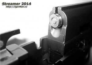 Естественно, что травматический пистолет Streamer 2014 будет нуждаться в доводке, несмотря на то, что многие его элементы были улучшены. Первое что нужно сделать с данным травматическим пистолетов, в случае если при покупке вы не досмотрели и приобрели образец с низкокачественно обработанным патронником, это шлифовка этого самого патронника. Но нужно помнить, что делать это нужно очень аккуратно, так что бы диаметр патронника не стал больше 9,65 миллиметра. Ну а если он изначально больше нужного диаметра, то шлифовать его или нет будет зависеть от того как входят патроны в патронник. В идеале же конечно нужен патронник, отшлифованный до зеркального блеска плотно прилегающий к гильзе по всей площади. Канал ствола так же можно отшлифовать до зеркального блеска, где это позволяют «зубы» большого толка от этого не будет, но то, что существенно облегчится чистка оружия после стрельбы – факт. Ударно-спусковой механизм так же быстрее всего будет нуждаться в доработке, трущиеся поверхности деталей необходимо будет обработать обратно же с помощью пасты Гои до идеальной гладкости, но стоит делать это очень аккуратно, чтобы поверхности не были скошены и оставались ровными. Это даст более плавную работу механизмов оружия, кроме того когда будет произведена полная разборка оружия можно будет лишний раз убедиться в не самом высоком качестве пистолета.