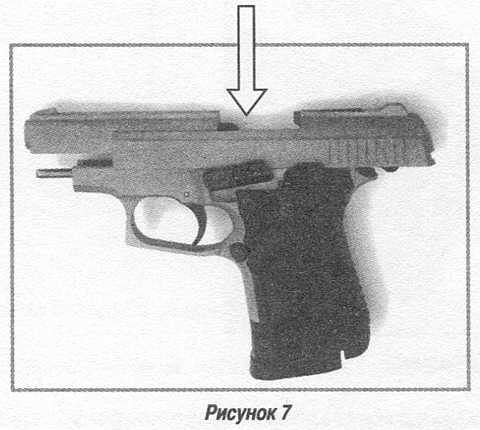 Кожух с затворной задержки снимается нажатием на неё сверху вниз как показано на рисунке 7.