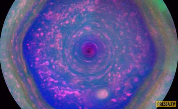 12. Северный полюс Сатурна. Здесь нет оленей — только огромный гексагональный шторм