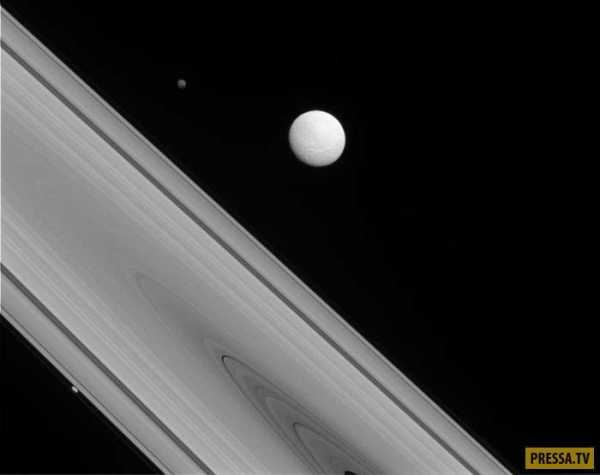5. Три спутника Сатурна (Титан, Мимас, и Рея), которые удалось запечатлеть на одной фотографии.