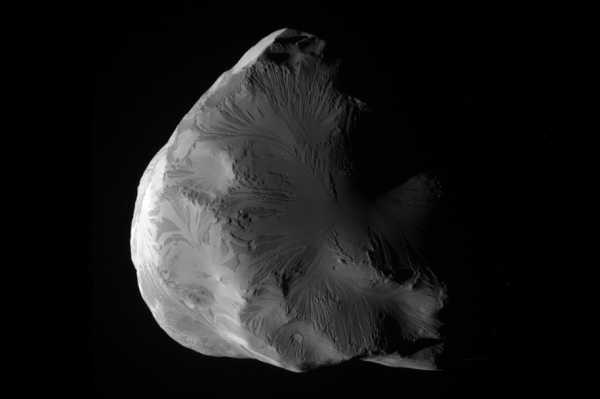 15. Феба — один из нерегулярных удаленных спутников Сатурна, открытый У. Пикерингом в 1899 году по снимкам, полученным в Арекипской обсерватории (Перу). Названа в честь титаниды Фебы из древнегреческой мифологии. Феба является очень тёмным телом, но внутренность некоторых кратеров состоит из более светлого материала, предположительно льда. (Фото Nasa | JPL-Caltech | Space Science Institute):