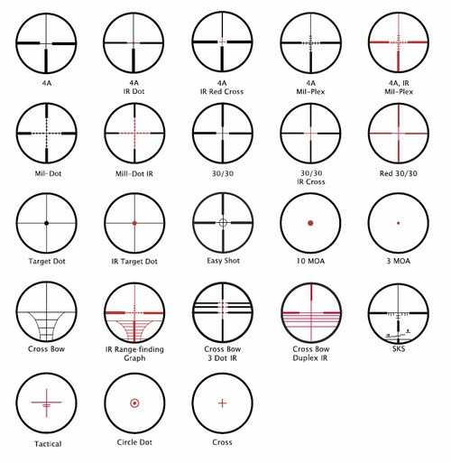 Более простые варианты прицельной сетки используются охотниками, сложные применяются при спортивной стрельбе.