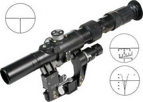 Считается старожилом по своей конструкции, которая была разработана более 70 лет назад. Имеет прочный корпус из алюминия авиационного типа. Устанавливается на любой тип крепления на ружья СКС, ОП-СКС. Прицельная сетка – тонкий пенек. Линзы изготовлены с нанесением просветляющего покрытия. Кратность увеличения – 3,5 крат, сетка – парабола.