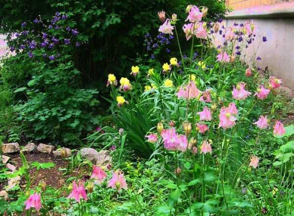 А всё потому, что цветник с двух сторон скрыт: яблоней и высоким шиповником.