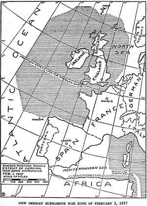 Зона действий немецких субмарин в 1917 году.Действия подводных лодок Германии в Первой мировой войне — применение субмарин Германией во время Первой мировой войны[1].