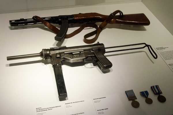 14. Медали за участие в Корейской войне и пистолеты-пулемёты ППШ и М3А1.