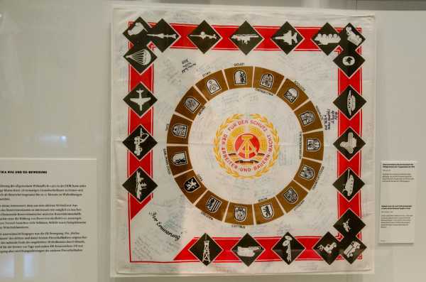 31. Памятный платок с эмблемами родов войск ННА и гербами городов ГДР.